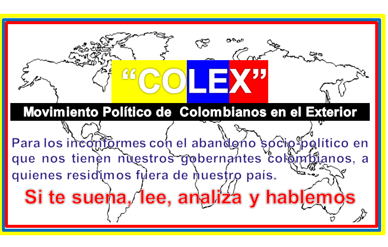Psdta. En la imagen cabeza de este editorial le he dado el nombre de “COLEX” (Colombianos en el exterior) a ese posible Movimiento político, por poner un nombre simplemente, no por que tenga que ser ese.