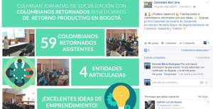 Grande fue mi sorpresa cuando al ingresar al Portal de “Colombia Nos Une”, el pasado 03 de Marzo, encuentro con que precisamente ese día, habían culminado en Bogotá, unas Jornadas de socialización con colombianos retornados beneficiarios del “Retorno productivo”.