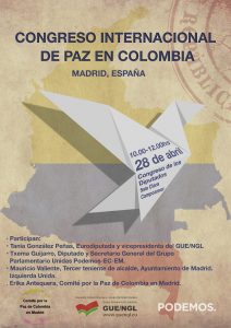 Igualmente nos informa el “Comité por la Paz de Colombia en Madrid” que en el marco de ese Congreso Nacional de Paz, se elaboró un manifiesto que puede ser firmado por organizaciones y/o ciudadanos del mundo, en el siguiente link: https://docs.google.com/forms/d/e/1FAIpQLScCdw8VJClnW5jPiGbm-IMRw2L64NRx-4hHvobJn4z5LkFmZA/viewform#responses, el cual será leído en el Congreso de los Diputados de España el próximo 28 de Abril.