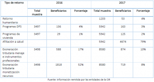 En ese informe se reconoce lo que muchas veces hemos denunciado, y es que “Las coberturas de atención de los beneficiarios de la Ley 1565 de 2012 en los programas ofrecidos por las entidades que conforman la CIR son reducidas”, y por ello consideran necesario “fortalecer la oferta de servicios y hacer un seguimiento a la atención de los beneficiarios, a través de los Subcomités de la CIR.”