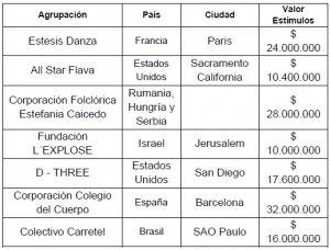 Para el año 2015, Circulación Internacional de compañías de danza: 7 estímulos a las ciudades de:
