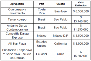 En el año 2011, se otorgaron 5 pasantías Colombia-Cuba para Danza por $50 millones.