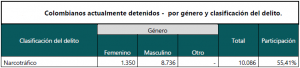 Y en cuanto al número de colombianos detenidos en el exterior repatriados hacia Colombia, estamos a la espera de que por competencia, el Instituto Nacional Penitenciario y Carcelario “INPEC” de nuestro país nos responda.