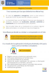 Después de infinidad de catástrofes naturales mundiales, mas las ocasionadas por la mano del ser humano, registradas en los últimos 10 años, donde han fallecido un buen número de colombianos, mas la actual pandemia ocasionada por el COVID-19, no sabemos qué mas tenga que pasar para que nuestros connacionales se concienticen de la necesidad de realizar el Registro consular en sus respectivas Sedes consulares.